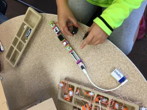 As you can imagine, an elementary-school maker club is bound to look different than its middle or high school counterpart. Due to age and lack of life experience and skills, available tools are different and the need for adult support is slightly greater. So far, I have been impressed with the interest and enthusiasm of the students to tinker and begin research as they consider self-selected topics. For those still unsure what form their making will take, we have an extensive collection of littleBits, modular electronics prototyping kits, and a Lego robotics set to scaffold the making