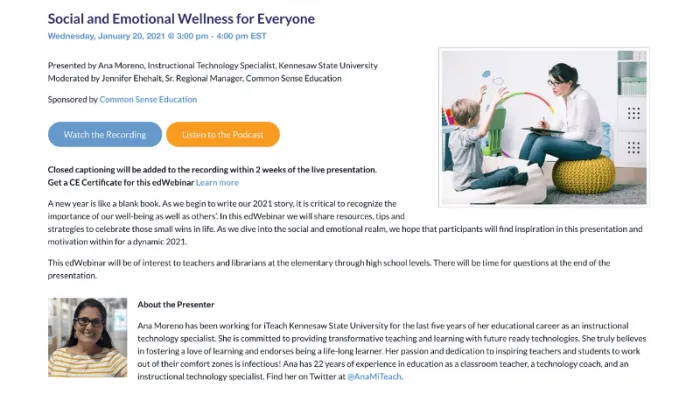 Common Sense team members Barbara Huth and Tali Horowitz present this session to highlight how you can use the Common Sense Digital Citizenship curriculum to teach Social Emotional Learning skills. While the session was presented during distance learning, most (if not all) of the tips they share are also very relevant for in-person instruction. They also model the use of a Digital Dilemma scenario, and share some tips on how teachers can find media balance in their own lives while supporting students to do the same.