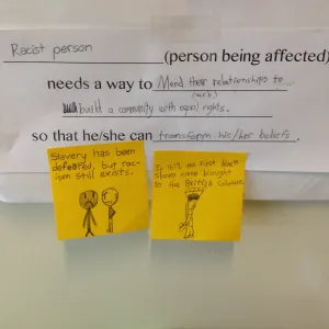 Then, they used Post-it Notes to document answers to their questions that they found in books and through interviews. This was a great opportunity to talk about primary and secondary sources of information as well as to practice asking questions without judgment.