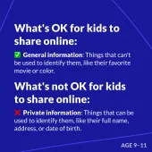 Many kids will naturally want to share about themselves online. Talk with them about what's OK to share and what to keep private. 🔒