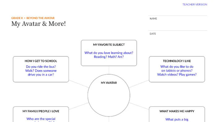 An avatar might show what you look like, but there's so much more to every person than what fits in a picture. Students create their own avatars and explore the different parts of themselves that make them unique. Through sharing and connecting with classmates, students discover that everyone has hidden depths beyond what we can see.