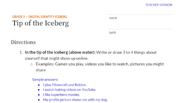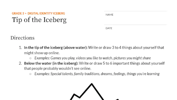 Just like an iceberg with 90% hidden underwater, our online presence shows only a small part of who we really are. In this lesson, students explore what they share online and what stays private. They'll learn to create a positive digital identity that reflects their values while protecting their privacy, becoming mindful digital citizens who understand how their digital choices shape how others see them.