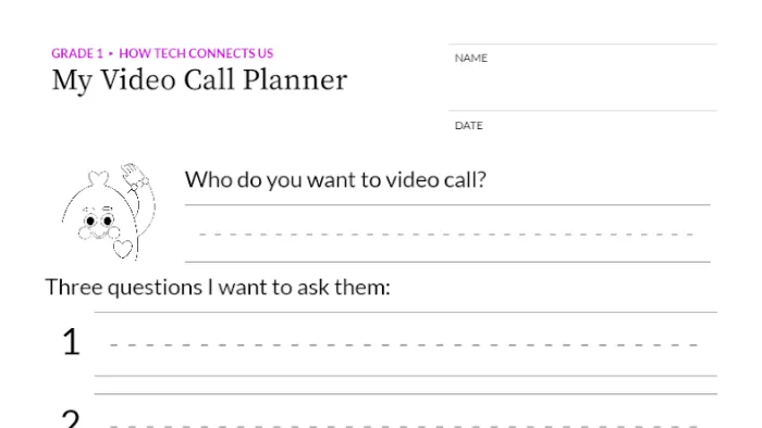 Technology can help us stay close to loved ones who live far away. Students learn how to have meaningful conversations through devices: asking caring questions, listening well, and sharing about themselves. By planning their own special video call, students discover how technology can strengthen relationships across distances.
