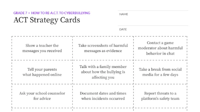 When cyberbullying happens, it's crucial to know how to respond effectively. This lesson introduces students to the ACT framework, a practical approach for addressing online harassment. Students will learn strategies for seeking help from adults, collecting evidence, reporting incidents, and practicing self-care, equipping them with concrete tools to navigate challenging online situations and support their digital well-being.
