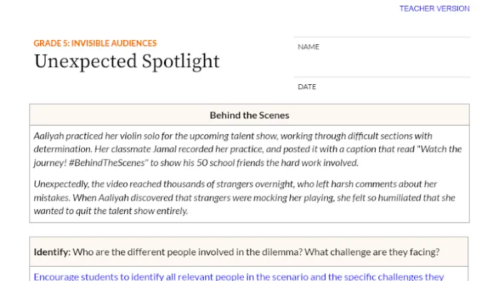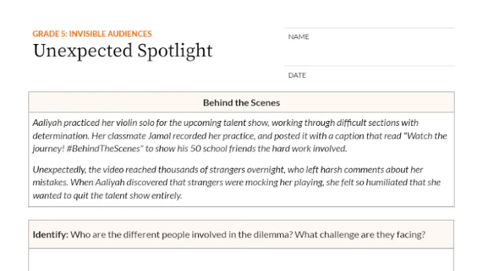 A single post can transform someone's reputation overnight. In this lesson, students will grapple with real ethical questions about digital responsibility as they explore how algorithms can expose content to unexpected viewers. Through a thought-provoking digital dilemma and guided reflection, students will discover the delicate balance between sharing authentic experiences and considering the potential consequences of going viral.