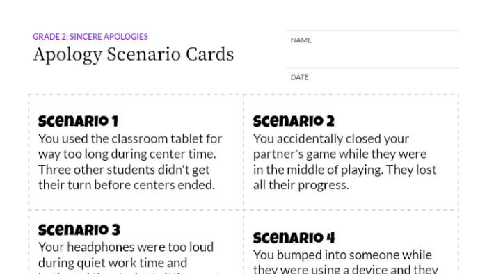 Mistakes and misunderstandings are inevitable as students navigate friendships. In this lesson, students learn the three essential parts of a sincere apology, and practice giving genuine apologies for mistakes, with examples drawn from media and tech use. They'll discover how honest acknowledgment of wrongdoing can strengthen friendships and help repair hurt feelings.