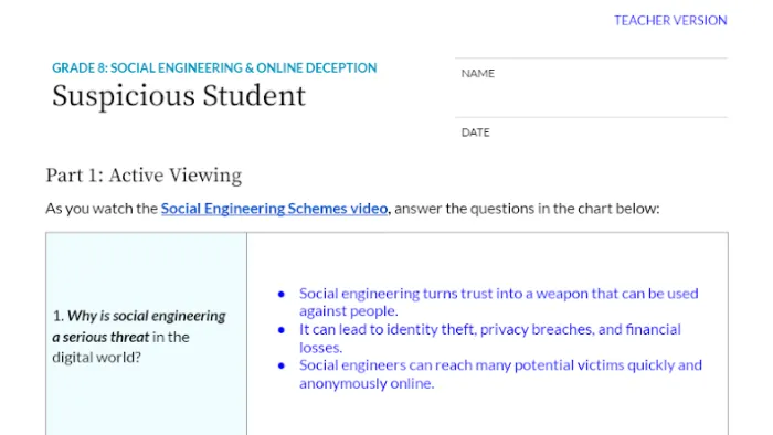 Trust your instincts, or give people the benefit of the doubt? In a world of increasingly sophisticated online deception, students face this dilemma daily. This lesson equips them to recognize social engineering tactics, identify red flag feelings, and apply their knowledge to a scenario so they can be more prepared to spot online deception and protect their personal information in the future.