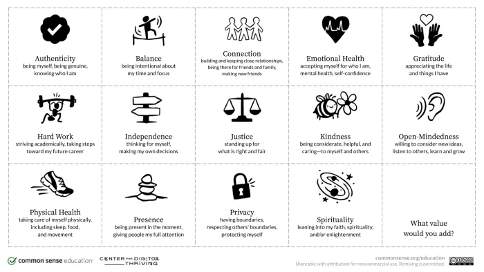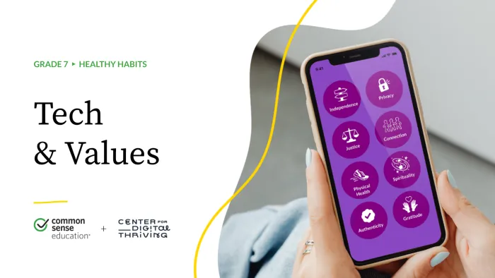 In this lesson, students explore how today's technologies make it easier or harder to live out different values. They also learn about how making choices that align with their values can promote a greater sense of well-being.
