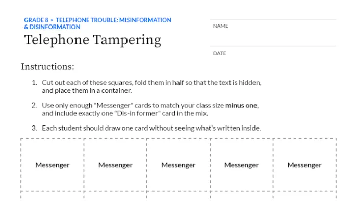 This lesson playfully engages students to demonstrate how online content transforms as it spreads, sometimes through honest mistakes and at other times through deliberate manipulation. Through an interactive game of telephone (with a twist), students distinguish between misinformation and disinformation, analyze why false content spreads so quickly on social media, and develop practical strategies for responding when they encounter questionable information.