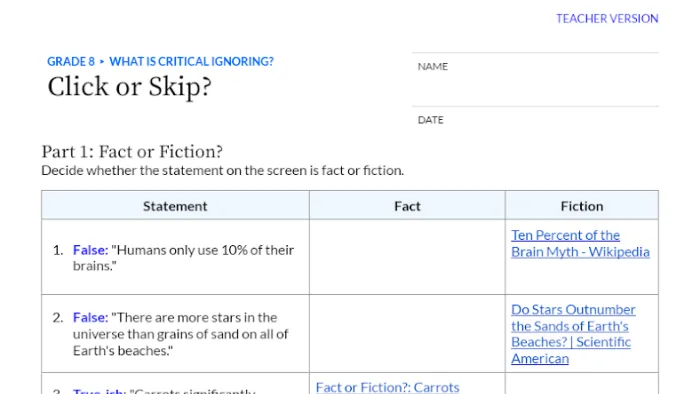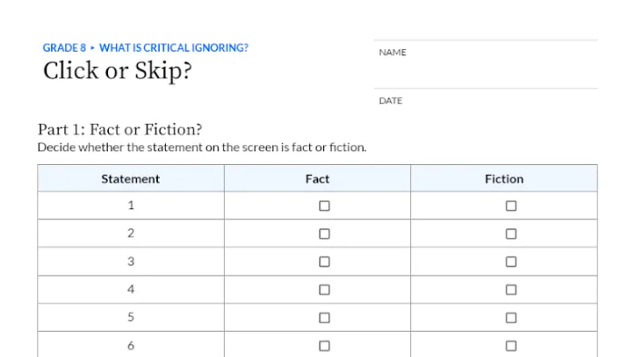 The internet is saturated with information, more than our brains could possibly handle on their own. Knowing what information to ignore is just as important as knowing what to pay attention to. In this lesson, students are introduced to the process of critical ignoring, a strategy they can use to manage the information they consume online.