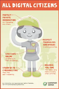 Sing along with the Digital Citizens in We, the Digital Citizens about all the different ways we can participate responsibly and respectfully online. This poster appears in the We, the Digital Citizens lesson (grade 2).