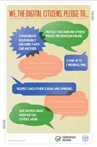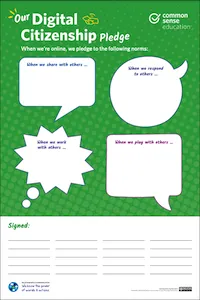Set expectations in your classroom with a pledge. Students can collaborate on ways to be great digital citizens. This poster appears in the Our Digital Citizenship Pledge lesson (grade 3).
