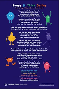 Sing along with the Digital Citizens in our most popular song, Pause & Think Online, about how to slow down and think about how our behavior online affects ourselves and others. This poster appears in the Pause & Think Online lesson (grade 1).