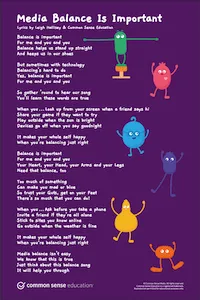 Sing along with the Digital Citizens in our Media Balance Is Important song about how to balance media and device use with other important parts of life! This poster appears in the Media Balance Is Important lesson (kindergarten).